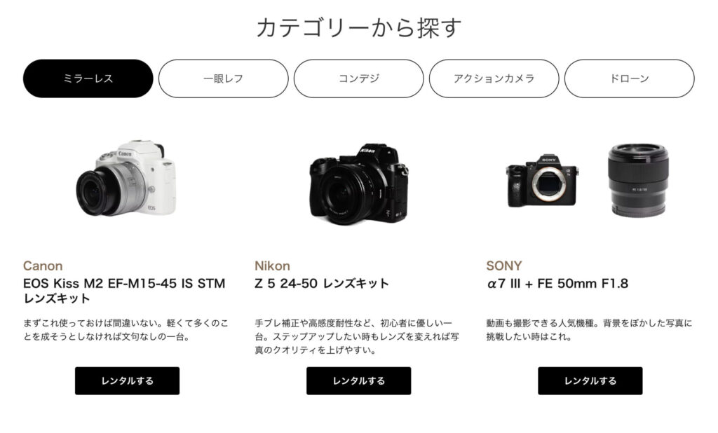 月額制でじっくり使い込むもよし、週末の撮影に合わせて短期で借りるもよし。