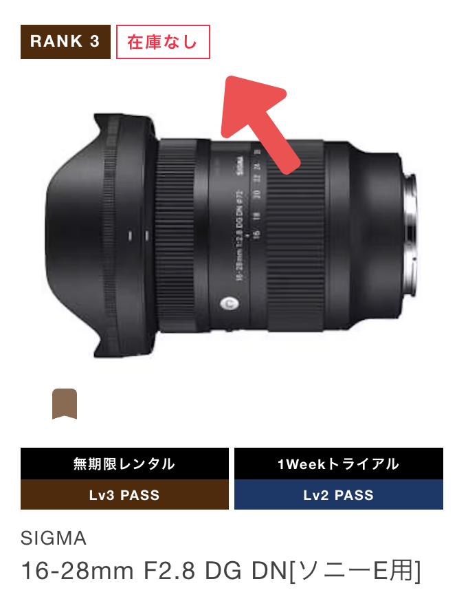 例えばLv2を契約していても、RANK3〜4の高額機材を1週間だけレンタル可能。普段は手が出せないレンズもお試しできます。