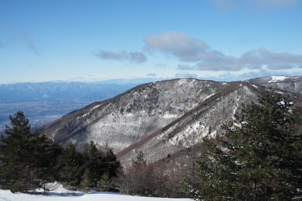 山頂からは目の前に浅間山がドーンと見えて、冬は雪をかぶった浅間山がガトーショコラのように見えることでも有名。