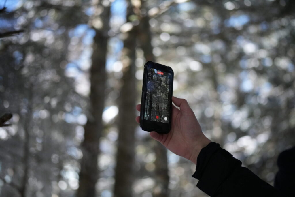 ふかふかの雪を歩く楽しさを覚えながらカメラで撮影。