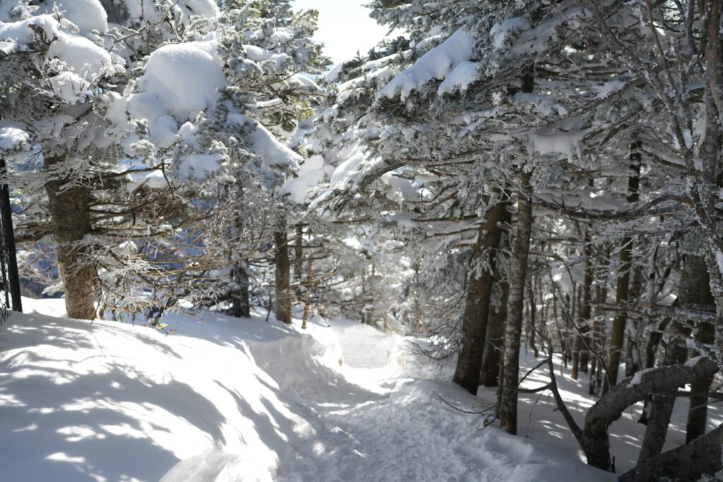 私個人としては久しぶりの雪山で、真っ白な登山道には撮影チャンスがいっぱい。