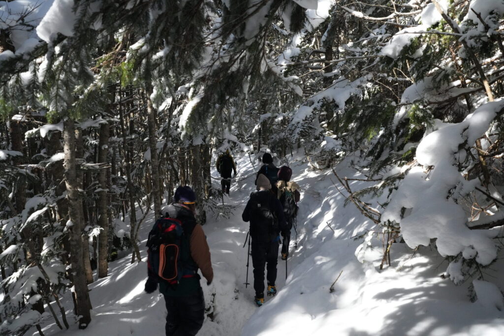 5人グループでの登山も新鮮で、雪道をワイワイ歩く楽しさは格別。