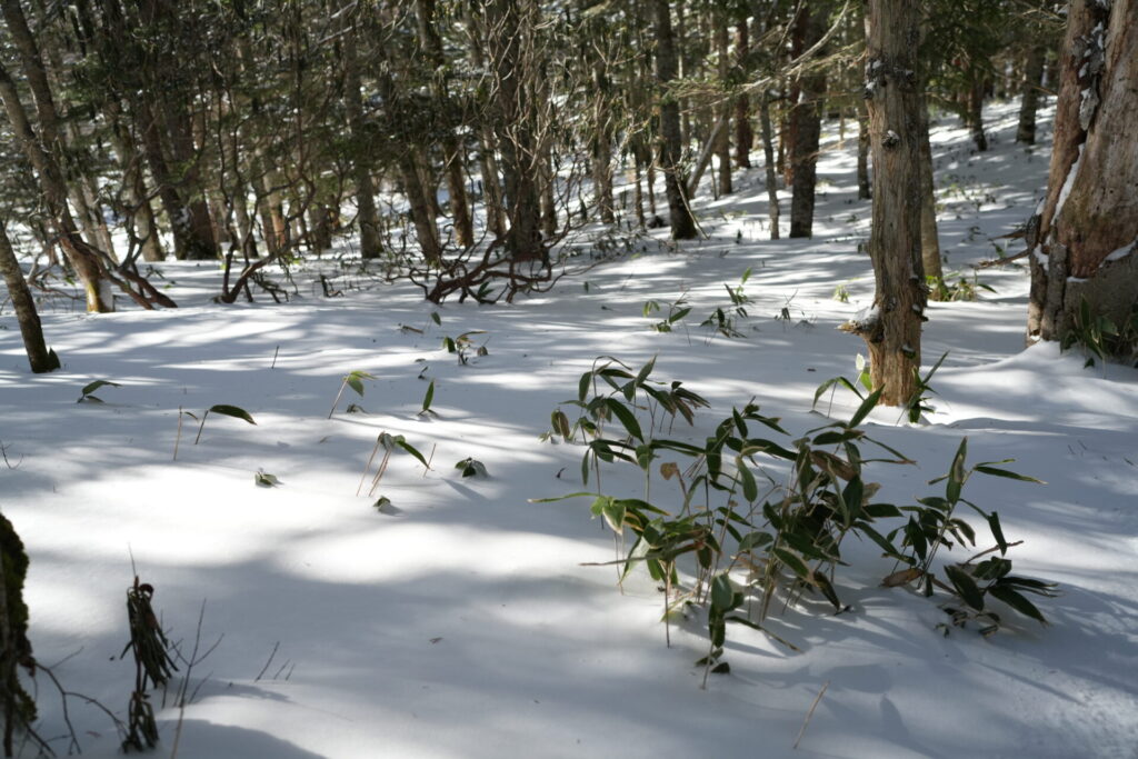 眺望はありませんが下山ルートとしては一般的で、積雪していても歩きやすいコースです。